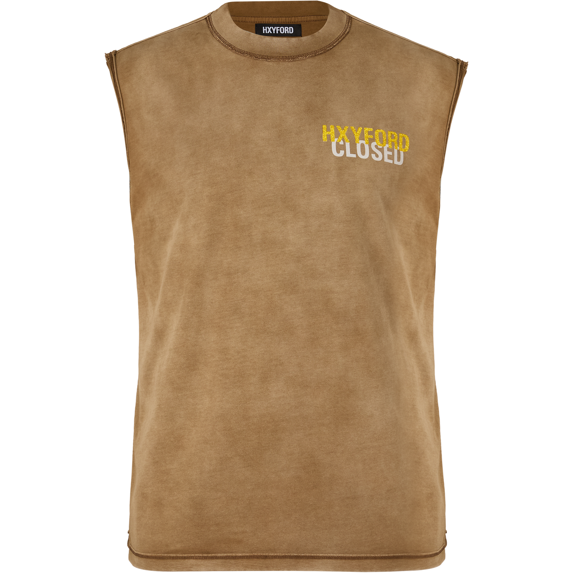 A sleeveless built on raw suede cotton. Front hit only for those who know. Back print sets the tone: Don’t compare to non. No equals, no reference points. Just HXYFORD.